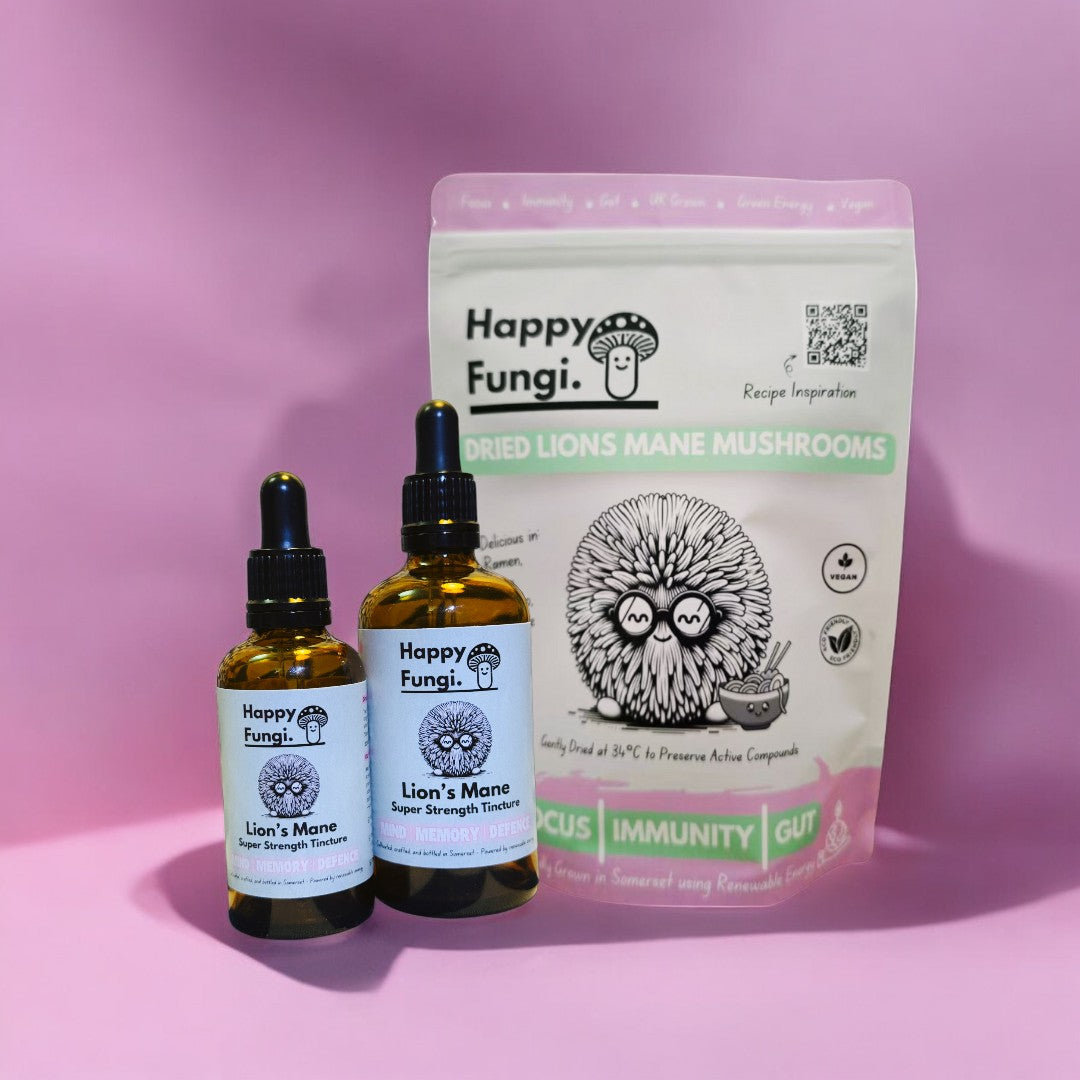 I’m not in this to follow trends. I started Happy Fungi to do things properly: with intention, integrity, and a bit of fun. No fillers. No shortcuts. Just potent Lion’s Mane, grown in my pink container and extracted with purpose.