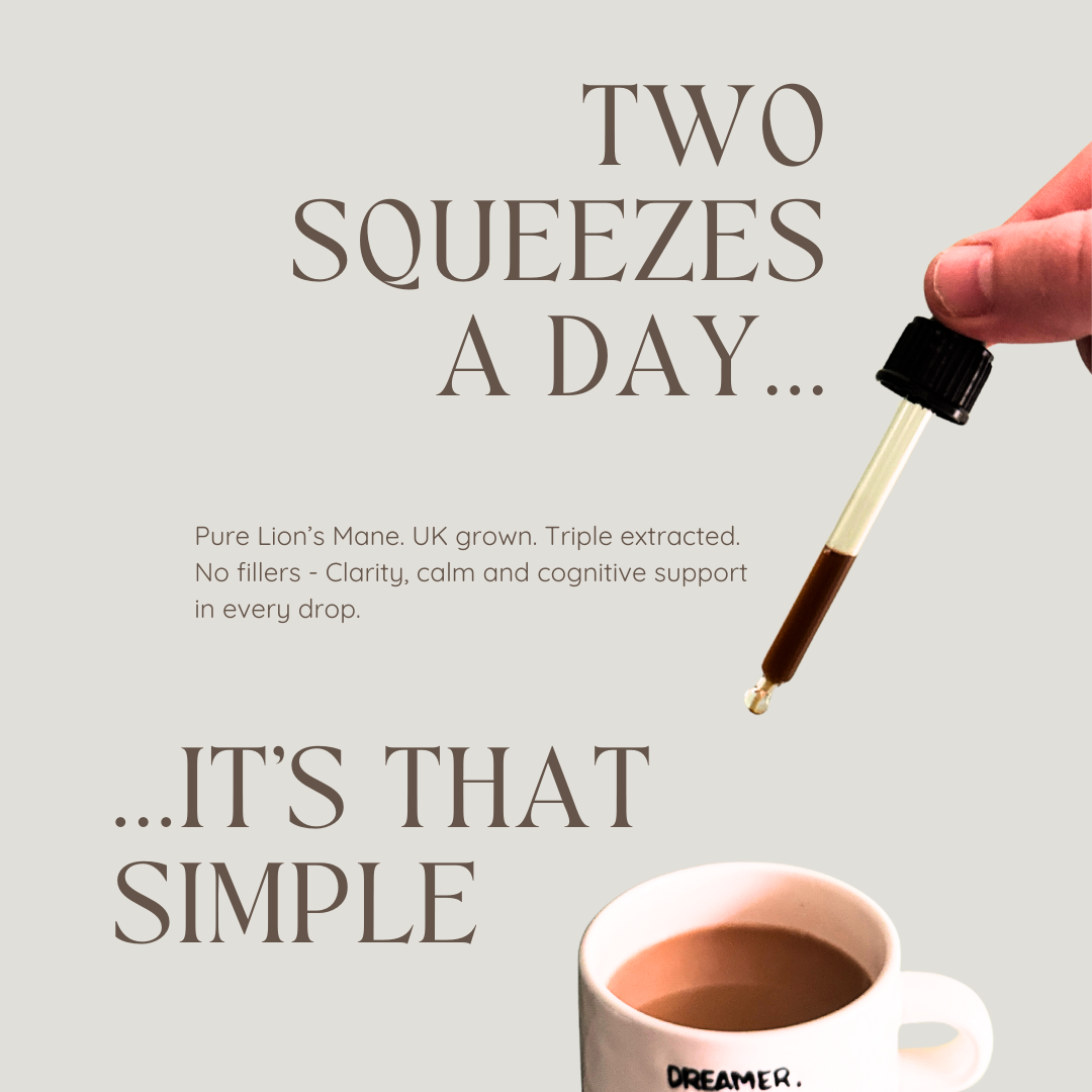 Sustainably grown in the UK with no fillers, no mycelium on grain—just pure, potent fruiting body extract.